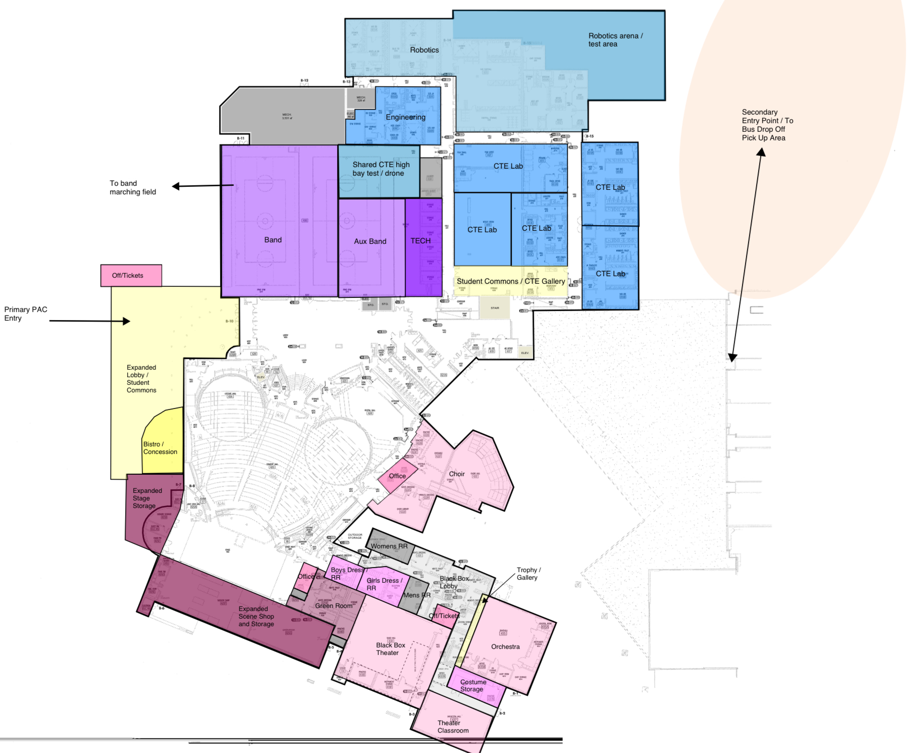 Some students also expressed confusion at the lack of classrooms displayed on the blueprints. Facilities failing to meet education standards was the catalyst for this bond, yet in only one place on the blueprints are new core-subject classrooms highlighted.